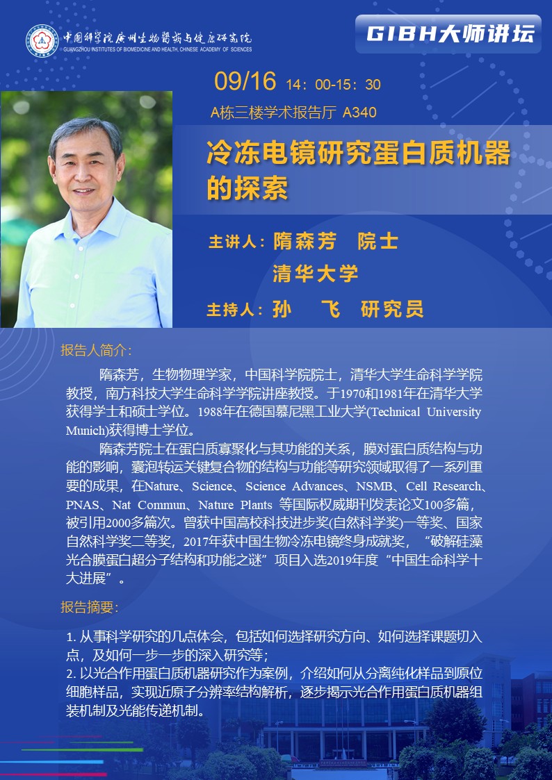 2025年9月16日大師講壇:冷凍電鏡研究蛋白質機器的探索
