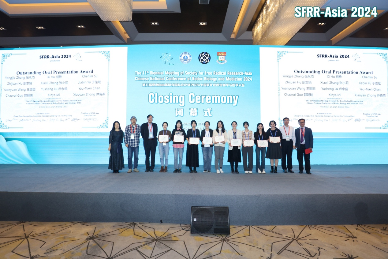 10月21日,第十一屆亞洲自由基研究國(guó)際會(huì)議暨2024中國(guó)氧化還原生物學(xué)與醫(yī)學(xué)大會(huì)在北京召開(kāi),此次大會(huì)頒發(fā)了“SFRR-Asia 亞洲青年研究員獎(jiǎng)(SFRR Asia Young Investigator Award,YIA)”以及“優(yōu)秀口頭報(bào)告獎(jiǎng)(Outstanding Oral Presentation Award)”等獎(jiǎng)項(xiàng)。