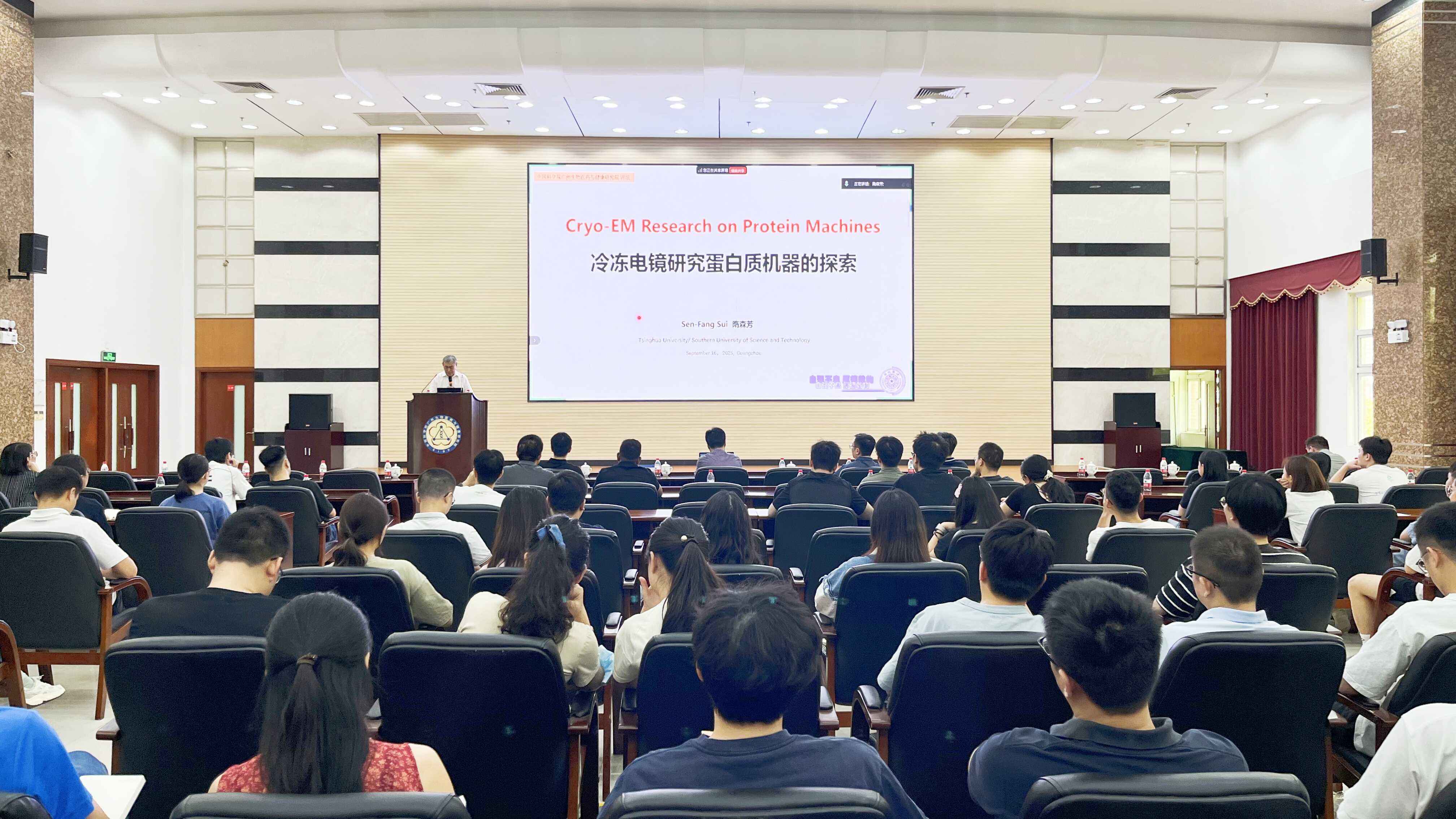 隋森芳院士以《冷凍電鏡研究蛋白質(zhì)機器的探索》為題作報告。他結(jié)合自身數(shù)十年科研經(jīng)歷,分享了幾點科研體會:選擇處于上升階段的學(xué)科、找準合適切入點并秉持堅持不懈的精神,為科研筑牢根基;持續(xù)跟進前沿,動態(tài)更新課題方向,助力在領(lǐng)域內(nèi)實現(xiàn)突破。報告中,隋院士還系統(tǒng)解讀冷凍電鏡技術(shù)的核心價值,重點介紹單顆粒技術(shù)與冷凍電子斷層成像技術(shù)兩大核心技術(shù),詳解其團隊創(chuàng)新性融合兩種技術(shù),成功實現(xiàn)細胞切片中原位蛋白近原子分辨率解析,破解傳統(tǒng)技術(shù)“純化結(jié)構(gòu)”與“原位功能”割裂問題的研究過程。同時,分享團隊在光合作用系統(tǒng)研究中的系列成果,尤其在“藻單體”研究中,借助冷凍電鏡揭示能量傳遞機制,發(fā)現(xiàn)骨架蛋白空間結(jié)構(gòu)與色素分子微環(huán)境對能量傳遞方向的關(guān)鍵調(diào)控作用,為理解光合作用高效能量轉(zhuǎn)化原理提供直接結(jié)構(gòu)證據(jù)。報告結(jié)束后,與會人員還圍繞科研方向選擇、冷凍電鏡樣品制備、學(xué)生培養(yǎng)等展開交流。