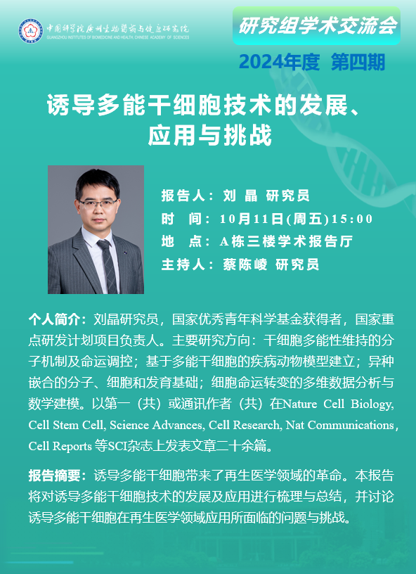 2024年10月11日研究組學術交流會(2024年第四期):誘導多能干細胞技術的發(fā)展、 應用與挑戰(zhàn)