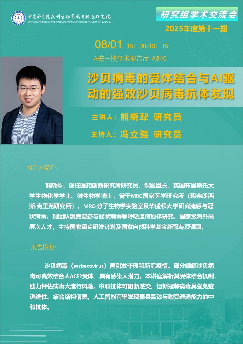 2025年8月1日研究組學(xué)術(shù)交流會(2025年度第十一期): 沙貝病毒的受體結(jié)合與AI驅(qū)動的強效沙貝病毒抗體發(fā)現(xiàn)