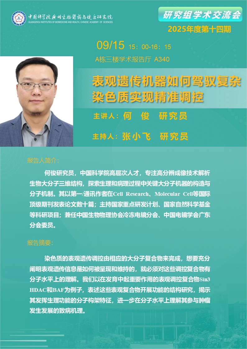 2025年9月15日研究組學(xué)術(shù)交流會(huì)(2025年度第十四期):表觀(guān)遺傳機(jī)器如何駕馭復(fù)雜染色質(zhì)實(shí)現(xiàn)精準(zhǔn)調(diào)控
